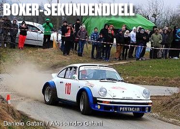 HALBZEITBILANZ Offensichtlich hat Walter Adleraugen. Die Titelerteidiger bewältigen die "versteckte" Lichtschranke WP1 mit einer ziemlich schockierenden 0,00 und gehen sofort in Führung. Die 0,66 in WP3 paßt dann aber so gar nicht ins Bild... Die Gatanis kommen bis auf 1/16 Sek heran. Dahinter tobt - mit schon deutlichem Abstand - der Zweikampf der PANDAS.