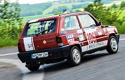 Szönyi Wulf (Panda) gehen mit 0,1 in Führung gefolgt von Winkelmann /Clausnitzer (0,26) im Porsche 924. Holger Palm /Thalia Palm erwischen 1 Min 0,54 Sec - und sind weg. |