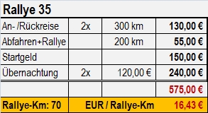 wie Rallye35, aber 50-70 WP-Km Startgeld: 180-220.-