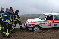 Der Fan-Club kam zum Kondulieren... Und die Freiwillige Feuerwehr Einsingen stürzt sich auf den gestrandeten Wartburg.