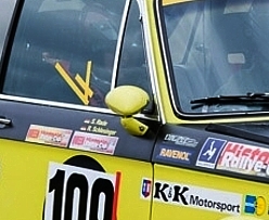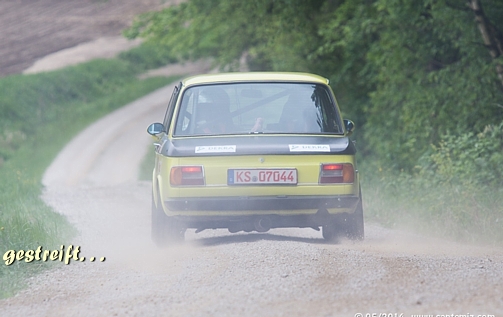 Rainer Schlesinger fährt grundsätzlich mit Licht - damit man ihn sieht. Bei dieser Rallye war das wirklich wichtig. Denn hinter ihm kam der fulminate Schweiz-Expreß. Gut dass die Rücklichter fuktionierten. |