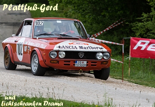In WP4 schlägt das Rallye-Schicksal zu. Die Lichtschranke steht schräg. Gerd erkennt dies zu spät, korrigiert... Schei.... WP4: 1,2 Sek nach WP4