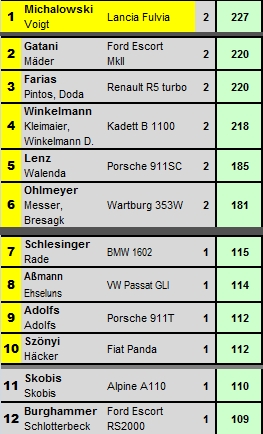 Puntgleich nach 2 Läufen... Die Niederländer greifen ab Rallye Grönegau (7.6) ins Geschehen ein. Nach Rallye Niedersachsen werden 2 Streicher eingerechnet. Dann sehen wir weiter... |