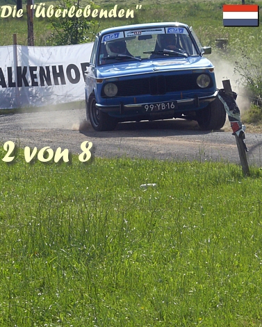 Der Wagen: Ein echter BMW 1602, nicht frisiert (getunt) 85 PS Der Copilot: Ein erfahrener Int. Bestzeitler Der Fahrer: Ein absoluter Neuling, der seine allererste Rallye fährt. Joop Hosmar /Aaldert Aaltink Wenn es wirklich stimmt, dass dies seine Rallye-Premiere war, dann hat er meine Hochachtung. Joop läßt den BMW richtig gut gehen... Größere Taten an den Lichtschranken waren nicht zu erwarten, wären aber möglich gewesen, wenn da nicht die 17 Sec. in WP4 gewesen wären. |