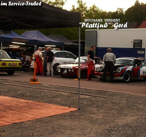 Michalowski /Voigt strapazieren ihren Schutzengel schon am Vortag. Ölschlauch am revidierten Lancia Motor geplatzt. Während der Rallye - nichts. Nur ein ein Plattfuß - beim Abfahren! Damit hat Gerd seinen Spitznamen endgültig verdient. Lenz /Walenda - auch nichts zu vermelden. "Aber der bläut...""Ich hab' zuviel Öl drauf geschüttet..." gesteht Walter. |