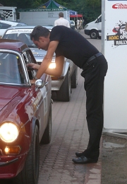Die Rallye stand auch nach dem Ziel noch immer unter Zeitdruck. Denn die letzten im Ziel - die Historischen - waren als erste für die Siegerehrung vorgesehen. Da war der Zeiten-Überprüfungs- Poker in der Auswertung höchst kontraproduktiv. Er betraf aber in erster Linie die Fahrer der RETRO-RALLYE-SERIE, die "Übertragungsfehler" korrigieren ließen. Wie man hörte, ging es hoch her bei den Sportkameraden. |