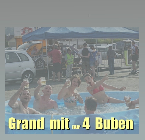 Wenn man einen Grand spielt, ist man froh über 4 Buben. Wenn man eine Rallye- Serie organisiert nicht... Dann möchte man sich an liebsten ver- kriechen anstatt das Schatten-Zelt auf- zubauen. Aber natürlich läuft mir der Rallyelei- ter Heiko sofort über den Weg. "Wieso seid ihr nicht mehr...?" "Wenn ich das wüsste...!" |