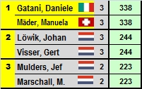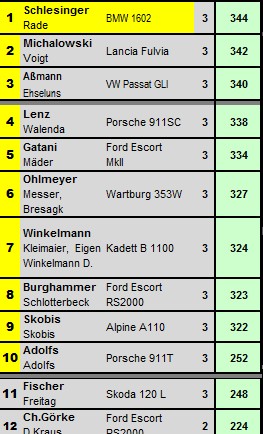 Das NL-Team Mulders/Marschall greift an. Sie fahren die Wartburg - Gatani nicht... Wenn Mulders/Marschall zweimal Dritter werden - übernehmen sie die Führung. Löwik /Visser müssen in Eisenach punkten um einen Ausfall zu neutralisieren. Platz 3 - mehr geht erstmal nicht. |