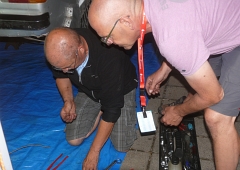 Und tatsächlich. Die Schumann-Jungs sind bestens sortiert, kommen aus dem Erzgebirge - Ron liegt aktuell auf Platz 5 - und natürlich helfen sie... 1 Rolle Leitung. "Bringt den Rest zurück, wenn ihr fertig seid...!"