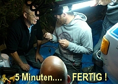"Wenn ihr so weiter macht, ist die Nacht rum ! Gib mal her..." Die Schumann-Jungs sind unvermittelt bei uns aufgetaucht und nehmen die Sache nun selbst in die Hände. |