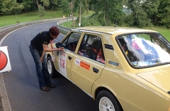 Jörg rollt bei einer Zuschauergruppe aus. "Gaszug gerissen - wer kann helfen ??" bleekt er in die Runde... Thüringer Rallye Wunder... 1) die verstehen sofort, was gemeint ist. 2) einer hat tatsächlich ein (Wurst-) Bändsel dabei. Der Rest ist Formsache...