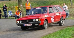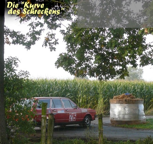 Spaß ? Ja, tatsächlich... Es scheint aber so, als ob die Freude an Handbremse und Drehzahl-Orgien zeit- weilig auf Christians Gehörgang schlägt. Die Max-Zeit wirft den Passat jedenfalls bei der Rallye auf Platz 16 (HRC) zurück. Nur 105 Pkte. sind die Ausbeute. Jetzt: PLATZ 5 Wenn man aber über Driftwinkel und sowas quatschen will, ist der Passat-Kombi ziem- lich weit vorne. Gut - es war schmierig und somit einfacher - aber einen Fronttriebler dermaßen zu schmeißen... Alle Achtung. Das paßt !