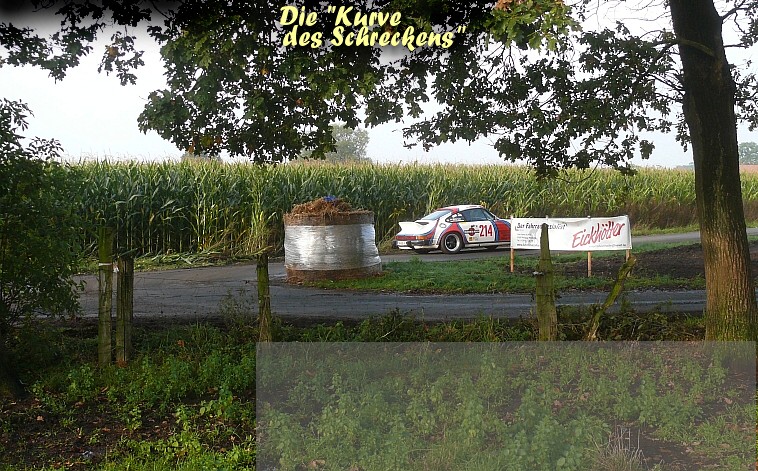Die schlechtere: Sein Beifahrer Erhard Walenda hat das mit der Selbstbeherr- schung nicht richtig drauf. Er mischt sich dreist in die Fahrerei ein... Anfahrt auf die LiSchra WP 6... "Los, los... GAS, GAS... !!!" ruft er hektisch... |
