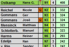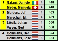 Mulders/Marschall und Löwik /Visser treten bei Bad Emstal an. Gatani/Mäder haben noch einen Streicher in Reserve (107) und bleiben nach Bad Emstal vorne. Aber: Greift Ehepaar Gommans ein? |