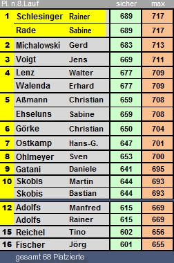 sicher: Pkte.n.8.Lauf + Ziel Twente (2x100) max: Pkte.n.8.Lauf + 127 Pkte. Twente |