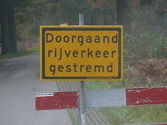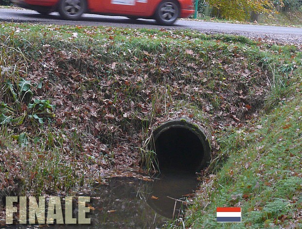 Tangenten-Manfred (Adolfs) dürfte ein durchaus flaues Gefühl in der Magen- gegend haben. Nicht weil er das Schild nicht einwandfrei übersetzen kann - dafür hat ja er einen Beifahrer - aber der Abgrund der bös- artig drohenden Entwässerungsanlage... "Klassisch tagential in den Graben ??" Im Gegensatz zu niedersächsischen Versuchsanordnungen wird es nicht mit Kleinschäden abgehen. - Gerüchte, dass im bergischen Porsche vorsorglich ein Satz Schwimmwesten mitgeführt wurden, sind allerdings pure Phantasie. Wir sind in Holland. Genauer. In Hengelo. Und Bangemachen gilt nicht. |