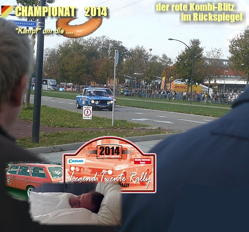 Der Kampf um die Wurstfindet zunächst in Christians Träumen statt. Höhepunkt im Leben eines Hobby-Rallyeisten: Ein Rallyeschild mit dem eigenen Foto ! Er ist Vorjahres-Sieger... Die mentale Vorbereitung tut gut. Der Hosmar-BMW bekommt es zu spüren. Plötzlich ist der Passat da... |
