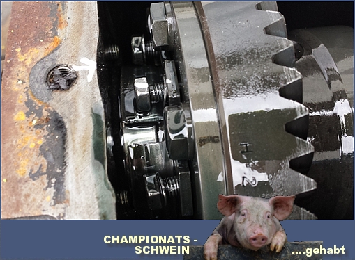 Rainer berichtet: "Mit der letzten Schraube, mit der letzten Mutter, hat der Gelbe die Twente geschafft. Ab WP3, wie geahnt, massiver Getriebe- ölverlust. Nach jeweils zwei WP´s 0,6 Ltr. Öl aufgefüllt. Das sind 50%. Ab WP4, Getriebe kaum noch schaltbar. Das optische Waterloo war wohl zweimal der Stadtkurs Hengelo. Wir möchten uns auf diesem Wege und auch über die HRC-Seite (wenn möglich), nochmal ganz herzlich bei den Teams, A. Aufderhaar, Escort blau; Walter Lenz, Porsche; Daniele Gatani, Escort; bedanken, die uns alle auf der WP8 überholt haben und dennoch vor dem gelben Schild, sich bedrohlich rechts dem Flutgraben näherten, um uns zum Zielstrich vorbei zu lassen. Wir selber hatten am gelben Schild noch 17 Sekunden und näherten uns mit der letzten Differentialkraft- übertragung, der Ziellinie. Irgendwann läuft auch mal bei einem "Hainbach-Differential" mit 75% Sperr- wirkung, das Haltbarkeitsdatum ab. Wie auf dem Foto ersichtlich. Die Schrauben sind raus, sie halten nichts mehr und warum es noch bis zum Zielbogen ging, ist uns ein Rätsel. So gesehen und im Nachhinein betrachtet, gab es wohl doch eine Chance, das Gesamt zu verändern." |