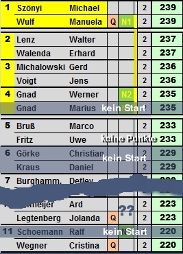 Läufe: 4 (9) /Streich: 1 (3) gewertet /Pkte |