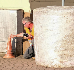 ![]() WP3/6 - Jörg Rautenberg erzählt: "Der Streckenposten wollte mich ursprünglich gar nicht dorthin lassen und hat es mir verboten: "Darf ich von dem Ballen aus Fotos machen?" Seine Antwort: "Nein! Aber geh" Super! Jetzt störte nur noch das Hütchen. Gerade als ich es verschieben wollte, guckt der Steckenposten um die Ecke und sieht das ganze. Ich habe ihm gesagt, dass ich genau so orange bin und die Rolle des Hütchens übernehmen würde." |