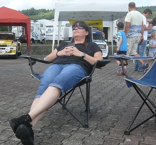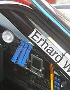 Erhard Walenda propagiert derweil Haus- haltsartikel als Rundenzähl- Hilfe nachdem sein grandioses Lichtschranken-Peilgerät (Hut von Filzstift) nicht auf der Porsche Innenverkleidung kleben blieb... |