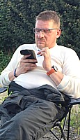 Moderne Zeiten Inniges Verhältnis zum Kommunikator selbst beim Sonnen. (und im Oldtimer....)