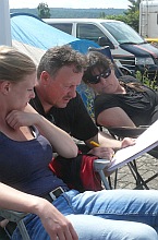 Die Wartezeit bis zum Start wird überbrückt mit Vergleichen der Schriebe und einem schnellen Holländisch-Kurs... "Harks" bedeutet 90 Grad-Kurve... |