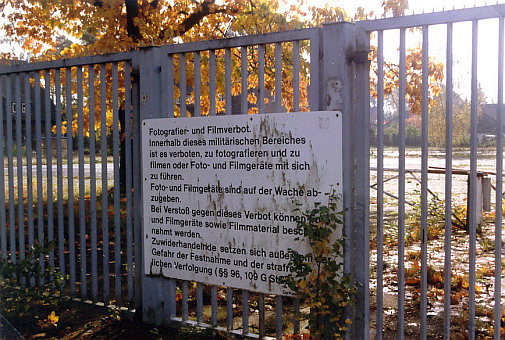 ihn kurze Zeit später. Kofferraum auf, Deckel ab - keine Zeit verlieren ! Zu unserer Freude hat ein Gartenbauer einen 20l -Kanister gespendet. Super - das reicht bis zum Gut Görtz. Wir haben den Streckenposten den leeren Kanister und 25 EUR für den Gartenbauer in die Hand gedrückt und weiter ging's.... Der "bedrohliche" Rallyeleiter ist noch in frischer Erinnerung. Scheiße. Gefühlte 10 Kilometer mit 30 km/h. Na ja - was soll's... Lt. Bordbuch '...durch das Tor vom Truppenübungsplatz auf Hauptstraße abbiegen' OK. Aber warum ist das Tor zu? Kacke! Die haben uns eingeschlossen! |