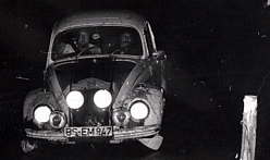 Aber überdurchschnittlich hohe Ausfall- quoten? Kaum. Und was heißt "überdurchschnittlich" ? Selektive Truppenübungsplätze gehörten "damals" einfach zu Rallyes in der BRD. (vgl.Fränk.Weinland) Putlos war sicher nicht besonders brutal... ...vergleichsweise. Baumholder, Schwarzenborn, Ehra-Lessien... Es gab viele Standort-Plätze mit vielen speziellen Eigenarten. Jeder war irgendwie anders. 1976 Ich erinnere mich sehr gut an "Moorkaten" (Nähe HH) im strömenden Dauerregen. Als unser Käfer im Schlamm um eine "blinde" Waldecke schlidderte, sah ich mich zu einer abrupten Vollbremsung veranlaßt... Die mind. 20 Meter breite Piste ging steil nach unten - und sofort wieder hoch. Was die Sache problematisch machte, war das hohe Wasser in dieser "Senke" - und die mind. 4 Rallyeteams, welche verzweifelt versuchten ihre festgefahrenen oder elek- trisch durchnäßten Geräte wieder flott zu machen... Beratung mit meinem Co - wo ist die Lücke? - dann 50 Meter Anlauf, laut hupen - Kollegen naß machen - und durch... Und noch 'ne Senke, und noch eine... |