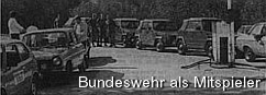 1974 Als ich die Scheinwerfer im Rückspiegel sah, wußte ich dass ein Schnellerer kommt. Als ich seine Rücklichter verschwinden sah ohne dass ich mit meinem Käfer dagegen halten konnte, wuchs das Fragezeichen... Denn das, was mich da eben verblasen hatte, war ein olivgrüner VW 181...!!! Na klar - der hatte mehr PS (1,6 Motor) - und das 1302-Fahrwerk - aber...? Im Ziel griff ich mir einen der Uniformierten und lernte: " Alle Wagen machen in der Woche ganz normalen Dienst." "Aber die Scheinwerfer, Ü-Bügel und der Twinmaster...?" "Alles Steck-Verbindungen... Umbau vor den Rallyes in 1-2 Stunden!" [...]...es gab die (ONS-) Kategorie Sonder- fahrzeuge. Dabei handelte es sich um DKW-F91/4 der Bundeswehr (z.B. 48 Starter bei der Ostsee-Nordsee-Fahrt 1966). (Quelle: ASC Hamburg) Seit 1968 ersetzte der VW 181 den DKW Munga. Schleswig-Holstein war eine BW-Rallye-Hochburg. Die Kasernen u/o Truppenteile kämpften verbissen. Dienstgrade entfielen im Rallye-Betrieb. |