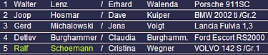 Mit diesem Sieg übernahmen Walter Lenz / Erhard Walenda erstmals die Führung von Szönyi /Wulf. |