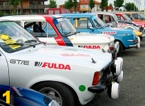 alle Starter der jeweiligen Rallye fahren Aufkleber ihres Unternehmens |