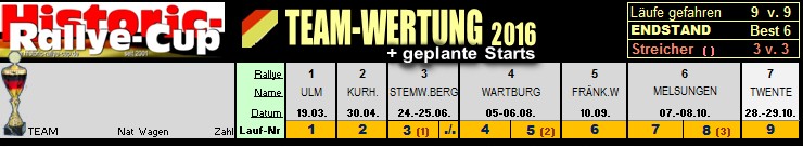 Alle eingesetzen Team-Mitglieder (max 4) erhalten Pokale. Plazierte bis Platz 10 Würdigung der Team-Leistung...