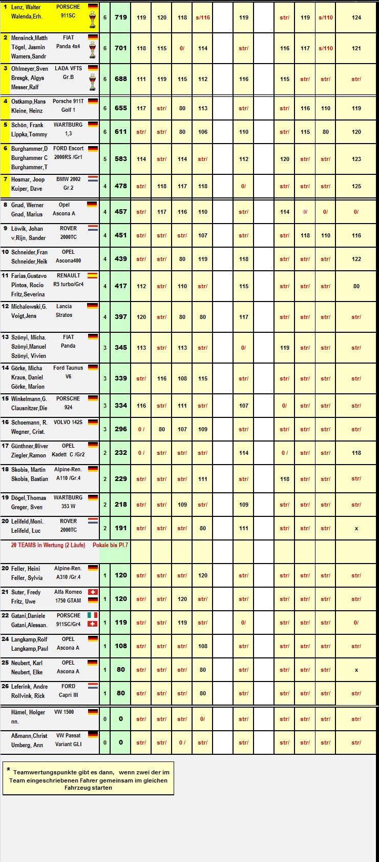30% d.Teams - alle eingesetzen Team-Mitglieder (in Wertung) - erhalten Pokale. Würdigung der Team-Leistung...