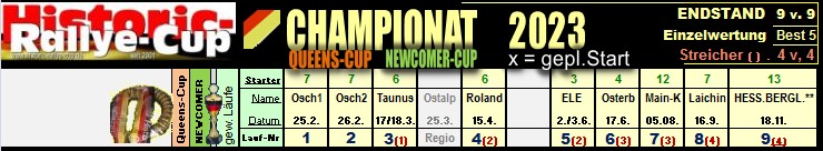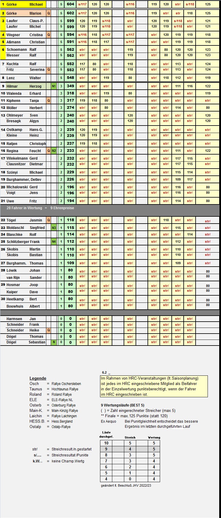 Der Punktbeste ist HRC-DEUTSCHLAND-CHAMPION und erhält den Sieger-Kranz. 30% d. Fahrer i.W. HRC-Trophäe NEWCOMER
