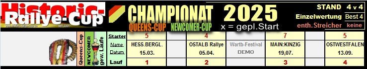 Die Mitglieder entschieden: 4 LÄUFE statt 11 (geplant) Ausserdem WARTBURG RALLYE FESTVAL (o.Wertung) |