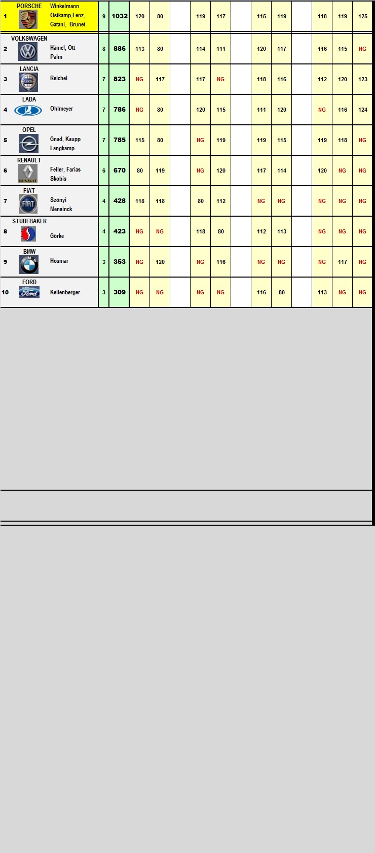 Der jeweils beste Fahrer (der IG) einer Marke holt Punkte für die Marke.