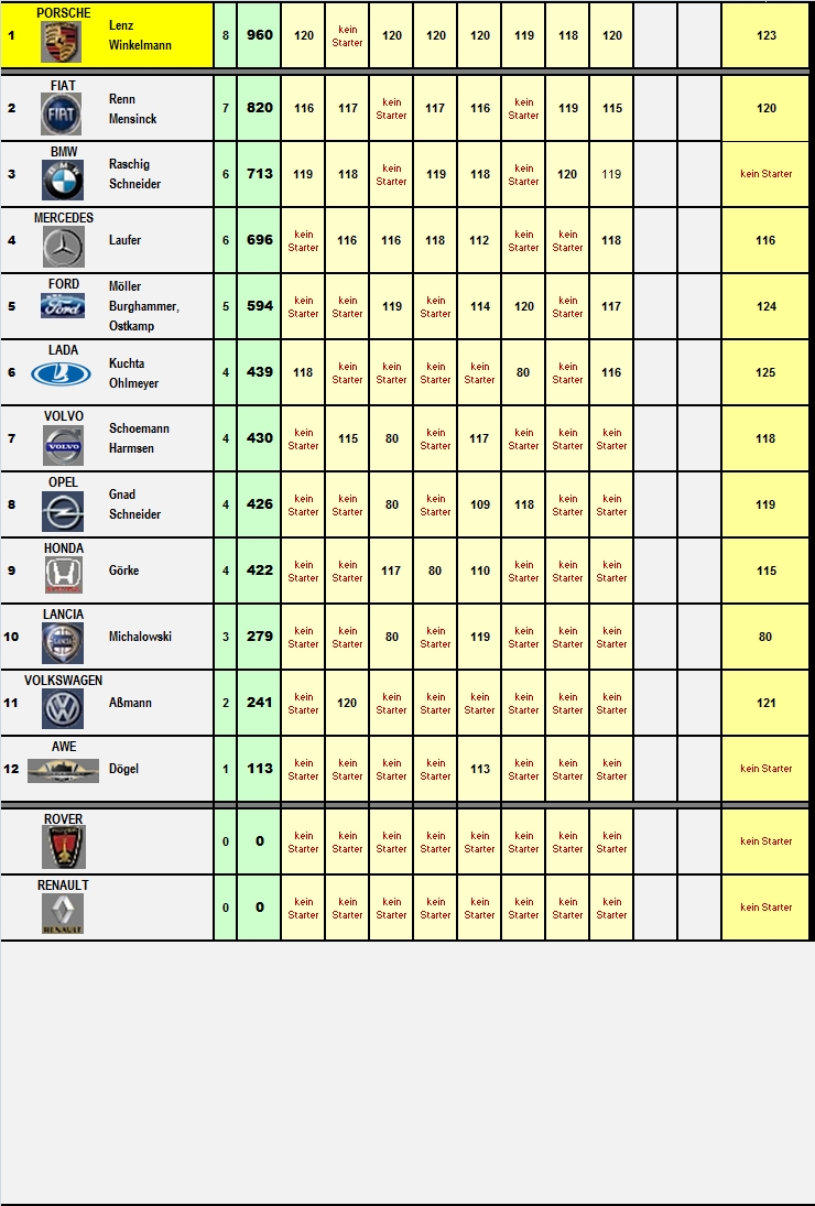 Der jeweils beste Fahrer (der IG) einer Marke holt Punkte für die Marke.
