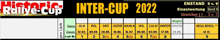 Seit erstmals 2006 Schweizer antraten, haben wir eine Sonderwertung für unsere ausländischen Freunde "erfunden". Aus dem SWISS-CUP wurde dann der ALPEN-CUP und seit 2010 der INTER-CUP (erste Niederländer). |