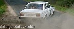 meiner ausgefeilten Kurventechnik, bis mir ernüchternd klar wird, dass dies ja die WP ist, wo wir heute Mittag (WP2) noch zum Ergötzen der Fans die Porno-Show mit nacktem Arsch geboten haben.... Die freun' sich alle nur dass wir den Deckel wieder haben !!! " 0,2 Sekunden..." meldet Heiner an der DK. - Aber das ist eigentlich Wurscht. Ich leide mit Karlchen, denn der brüllt seit der ersten Runde dieser WP4 aus einem sehr hörbar offenen Auspuff. Es hat ihn irgendwann bös' gestaucht hinten links.... Rein ins letzte Regrouping. Jetzt kann ich mal nachsehen. AuWeia !!! |