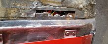 Wenn man beim TÜV beschäftigt ist und ausserdem einen Rallye-Escort fährt, der "leichte" Durchrostungen zeigt, dann schaut man mal genauer hin... ...und findet noch eine bedenklich dünne Stelle, und noch ein Loch, dann ein weiteres usw. Am Ende legt sich Detlev Burghammer selbst still. Das war im Herbst 2017. Total-Renovierung. Nun teilt er mit, dass er seine Heimrallye Ulm (1.Lauf) nicht schafft, aber zum 3.Lauf auf der Matte stehen wird. |