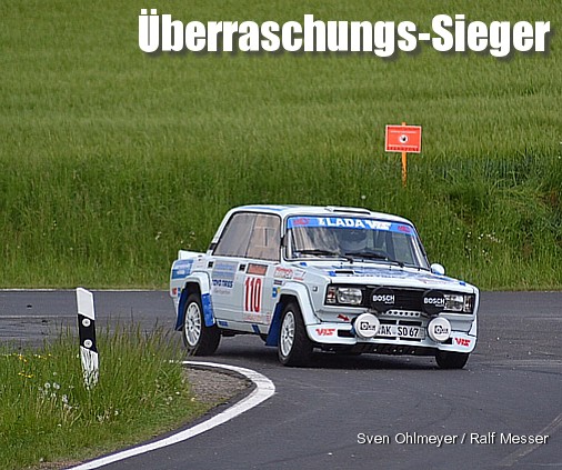 Der Rest ist schnell erzählt. Lenz /Walenda können ihre Führung zunächst ausbauen. Dann überkommt sie aber eine Phase der Unkonzentriertheit und gleichzeitig werden die Zeiten des Eisenacher Lada VFTS immer besser. In der allerletzten WP fahren Lenz /Walenda eine 0,60 sec - Ohlmeyer /Messer dagegen eine 0,12 sec !!!!! Das reicht für einen klaren Sieg (HRC). Das Dickschiff aus den USA landet auf Pl.3 ! |
