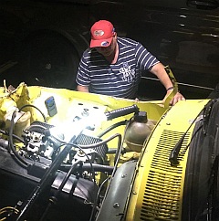 Oliver Günthner hat den Opel Kadett in "Rolf's Corner" (bergauf Kehre vor Autobahn) zart angelehnt (Planke). Das scheint nicht völlig unerwartet. Er hat zwei Auto-Cross erfahrene Schrauber samt üblichem Werkzeug (Hämmer, Tape...) dabei... |