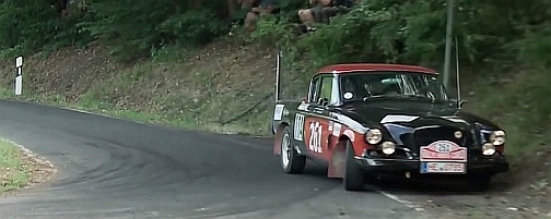 Christian Görke: Wie schon am Vortag waren die WP´s sehr anspruchsvoll und haben superviel Spaß gemacht, auch die Schotter- passagen gingen richtig gut mit dem Studebaker. Die allseits bekannte Spitzkehre in Krauthausen war natürlich eine besondere Herausforderung für uns, keiner hat geglaubt, dass wir unser Schlachtschiff ohne zurücksetzen da rumbekommen. Beim Abfahren hatten wir ausprobiert, links die 20cm Grünstreifen und den gegenüberliegenden Hang in unsere Linie mit einzubeziehen. Als wir das erstemal dann auf die Spitzkehre zugefahren sind, stand doch tatsächlich ein Fotograf auf unserem Grünstreifen und damit auf unserer Linie. Den Kollegen hatten wir nicht im Schrieb stehen und er hat nicht schlecht geschaut, als wir Ihm bis auf ca.1m Abstand auf die Schuhspitzen zugefahren sind, bevor ich das Steuerrad herumgeworfen habe. Den Hang haben wir dann auch tatsächlich fast vollständig benötigt, um die Richtung zu wechseln, aber es hat geklappt. Den Zuschauern vor Ort scheint es auch gefallen zu haben, zumindest konnten wir den Scenenapplaus durchaus wahrnehmen. |