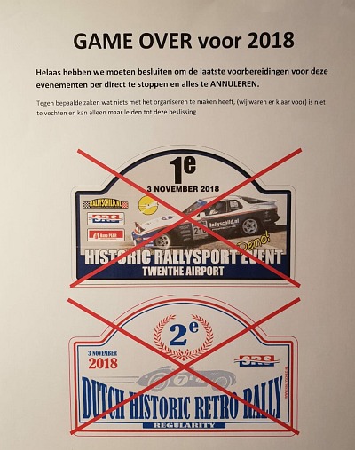 Am 13.10. - 3 Wochen vor der EUREGIO - trifft uns der nächste Holland Hammer. Absage der Rallye ! |