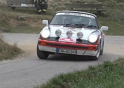 "Druck" haben auch die Champions. Hinter Lenz /Walenda (Porsche 911 SC) tänzelt der Turbo-geladene R5 giftig daher, räubert über die Ecken ("wir haben ja ein Reserve-Rad") und hat scheinbar nur ein Ziel: den Bürzel des 911... Allerdings geht bei diesem Treiben das Lischra-Feeling völlig in Vergessenheit. |