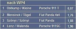 ![]() Erhard Walenda schaut optimi-stisch. Eigentlich sollten die Champions jetzt doch wach sein? Gustavo mit dem R5 Turbo nervt etwas. Walter ist ständig mit dem Rückspiegel beschäftigt... Aber die beiden Pandas werden sie schon holen und Ostkamp macht noch seinen Fehler ! Aber nach der ersten WP der zweiten Runde die Ernüchterung. Der Abstand zu den FIATS wird größer statt kleiner ! Und Ostkamp ist längst weg... |
