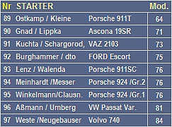 Schnittmenge Unvermittelt stellte sich dar, dass es nun -- da alle Streicher entfielen -- nur noch 3 Aspiranten für den Titel 2020 gibt. nämlich: - Lenz / Walenda - Winkelmann / Clausnitzer Nur diese 3 Teams werden nach der Holsten Rallye zwei Läufe in der Bilanz haben. Aber es bleibt abzuwarten, ob sie die restlichen drei auch bestreiten. |