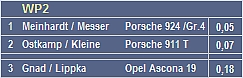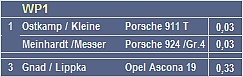 Samstag 01.08. Sichtung, WP1, WP2... Offenbar reichte die pure Anwesenheit des Mental-Coaches um Ostkamp /Kleine zu Höchstleistung zu motivieren. Der Frosch und Ronja fahren zeitgleich (!!!) Bestzeit. |