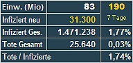 22.12. SACHSEN u. THÜRINGEN 7 Tage: Sachsen 426 / Thüringen 299 / Bayern 215 / bundesweit: 198 |